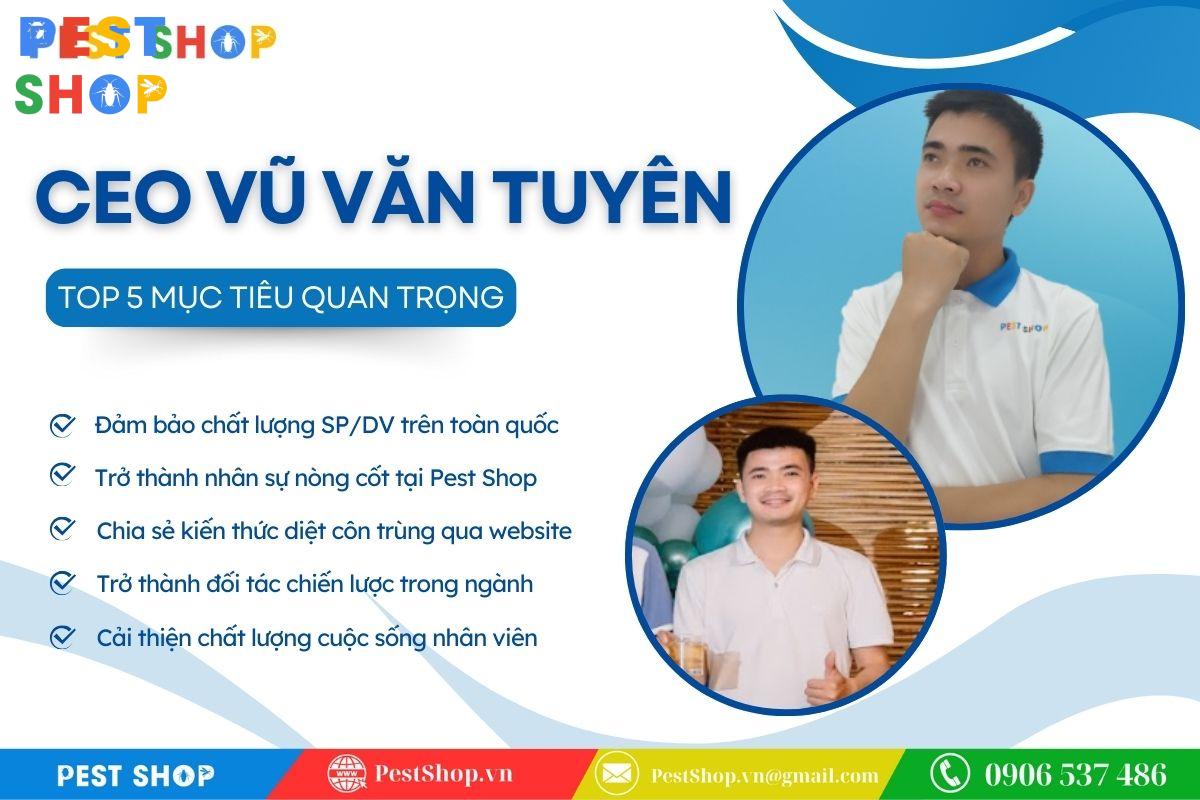CEO Vũ Tuyên đặt ra Top 5 mục tiêu quan trọng trong công việc nhằm thúc đẩy sự phát triển bền vững và nâng cao vị thế của công ty Pest Shop trong tương lai: