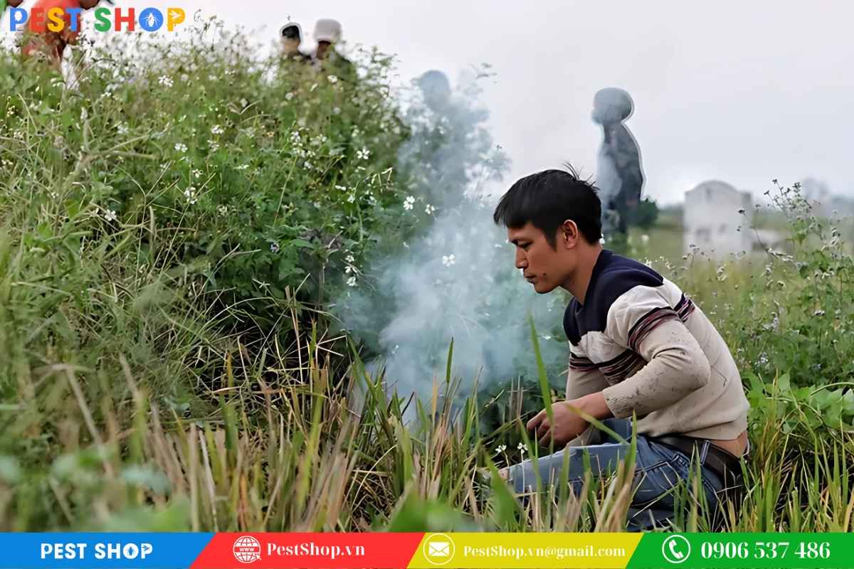 Cách diệt chuột dễ thực hiện, hiệu quả cao khác là hun khói đầu hang chuột. Phương pháp này sử dụng khói dẫn vào hang chuột, khiến chúng khó chịu, hoảng loạn và tìm cách chạy ra khỏi hang. Đối với những con không chạy kịp sẽ bị ngạt khói và chết trong hang.