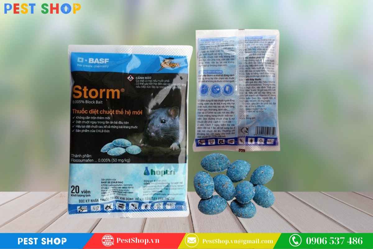 Thuốc diệt chuột Storm là loại thuốc dạng viên nén, có chứa thành phần Flocoumafen, thuộc nhóm thuốc sinh học chống đông máu thế hệ mới. Thuốc có hiệu quả cao với liều lượng thấp, chỉ cần một lượng nhỏ thuốc là đã có thể tiêu diệt chuột tận gốc.
