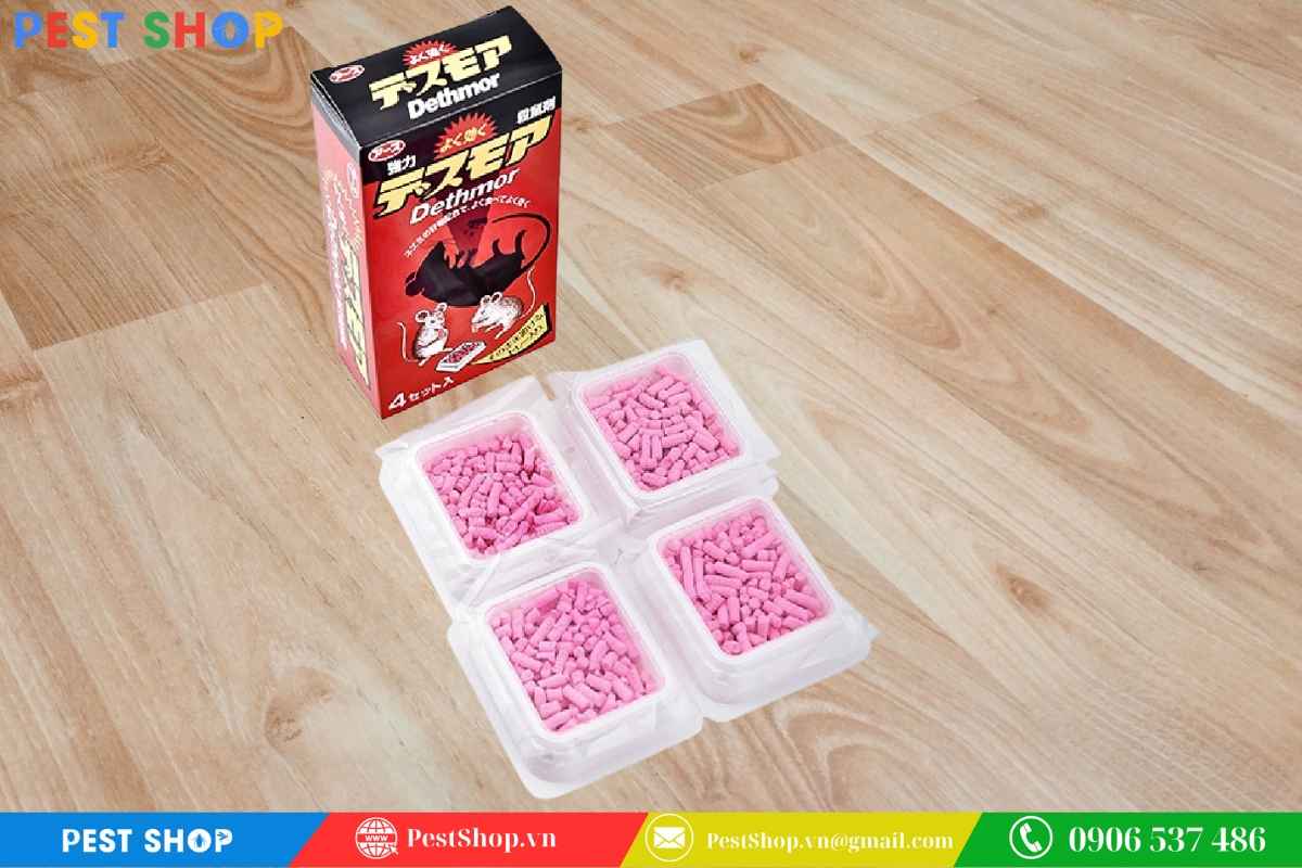 Dethmor là loại thuốc diệt chuột sinh học, có chứa chất Warfarin gây bệnh cho chuột. Sau khi ăn phải thuốc, chuột sẽ bị nhiễm bệnh, xuất huyết mắt, suy yếu dần và dẫn đến cái chết.