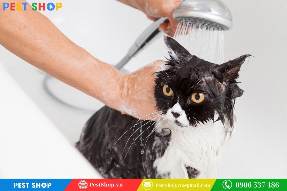 Sử dụng sữa tắm trị bọ chét mèo chuyên dụng