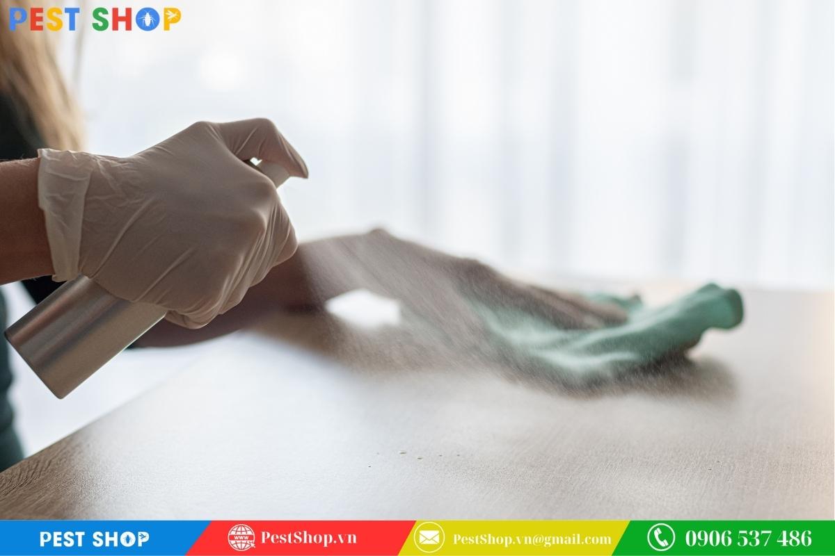 - Bước 2: Lắc đều chai thuốc và xịt đều lên bề mặt cần khử trùng theo hướng dẫn của nhà sản xuất.