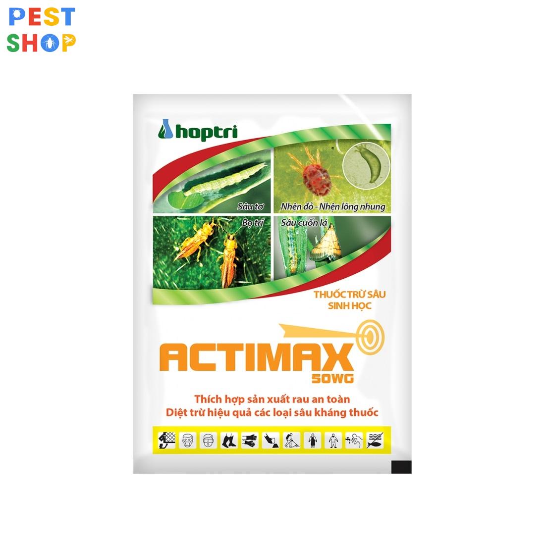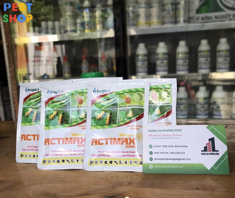 Thuốc trừ sâu sinh học thế hệ mới Actimax 50WG Đây là một loại hoạt chất làm tê liệt và dẫn đến chết khi sâu hại hút chích hay ăn phải thuốc, với hiệu quả chỉ từ 2-4 ngày. Là thuốc trừ sâu thế hệ mới với hoạt chất Emamectin benzoate trích ly trong quá trình lên men nấm Streptomyces avermitilis.