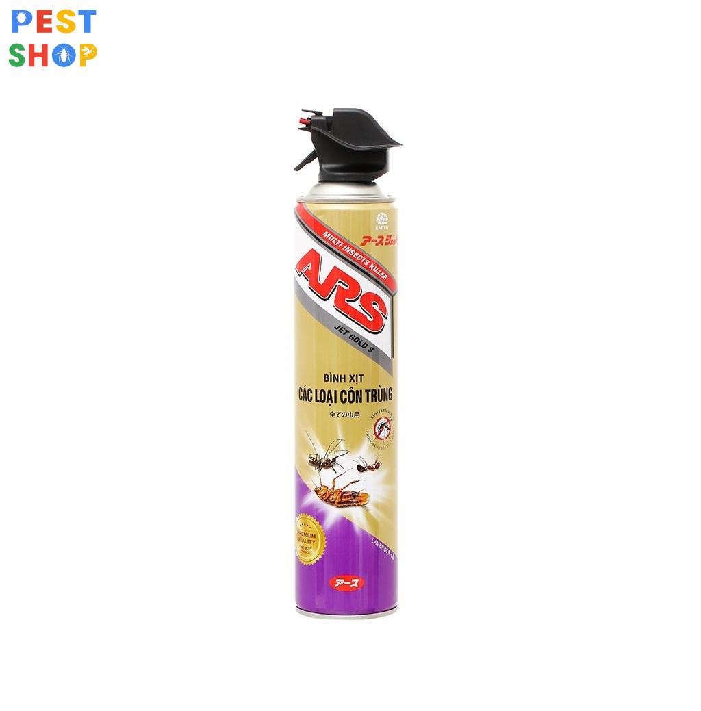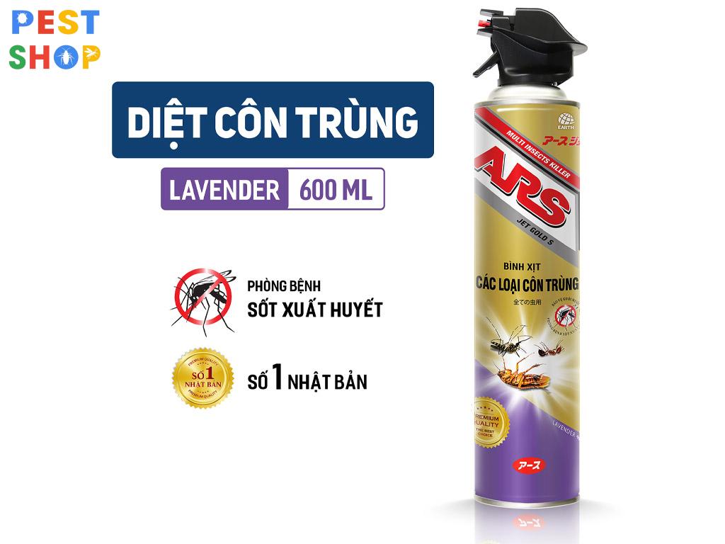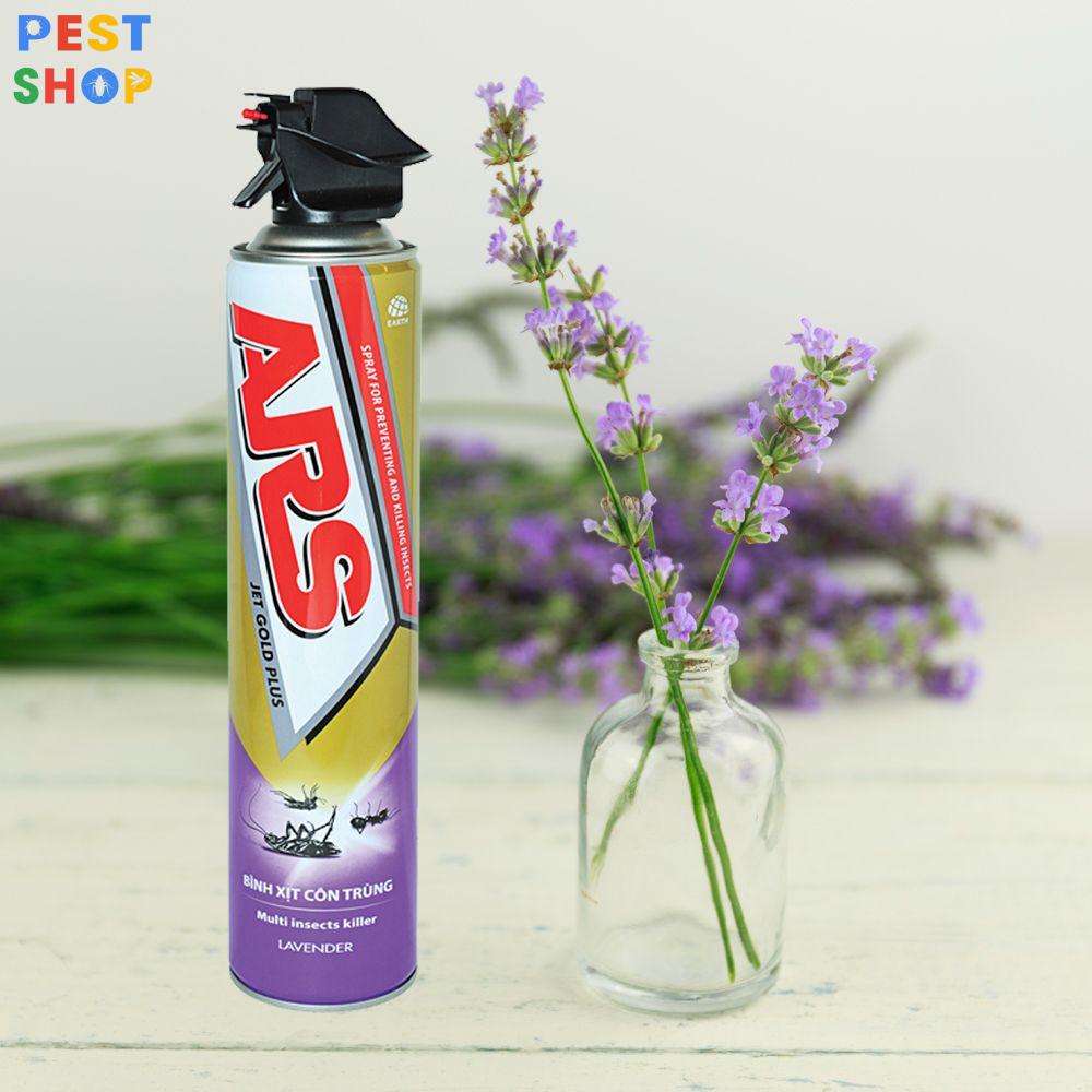 Chai phun côn trùng ARS Jet Gold S hương lavender dùng để diệt muỗi ruồi kiến gián trong gia dụng và y tế.