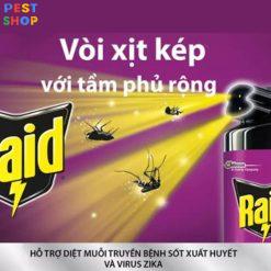 Chai phun côn trùng Raid hương lavender dùng để diệt muỗi ruồi kiến gián trong gia dụng và y tế.