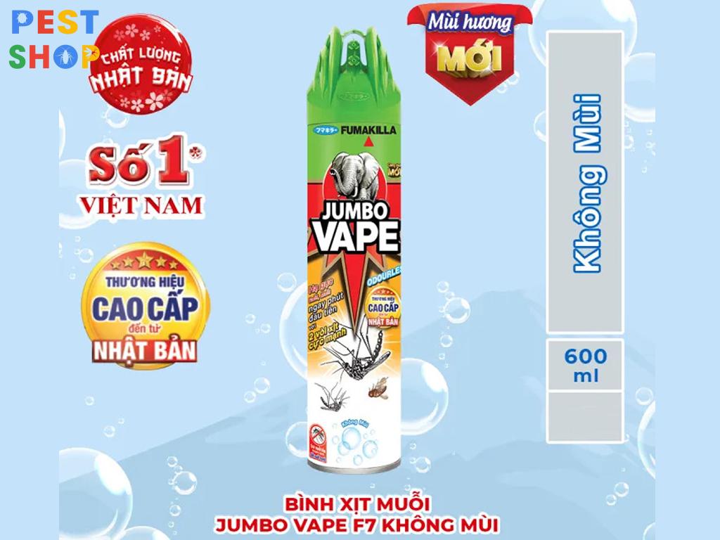 Chai xịt muỗi Jumbo Vape F7 không mùi dùng để diệt muỗi ruồi kiến gián trong gia dụng và y tế.