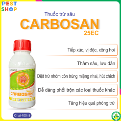 - Carbosan 25EC diệt trừ triệt để nhóm côn trùng chích hút ẩn sâu bên trong cây trồng, dễ dàng phối trộn với các loại thuốc bảo vệ thực vật khác để tăng hiệu quả phòng trừ