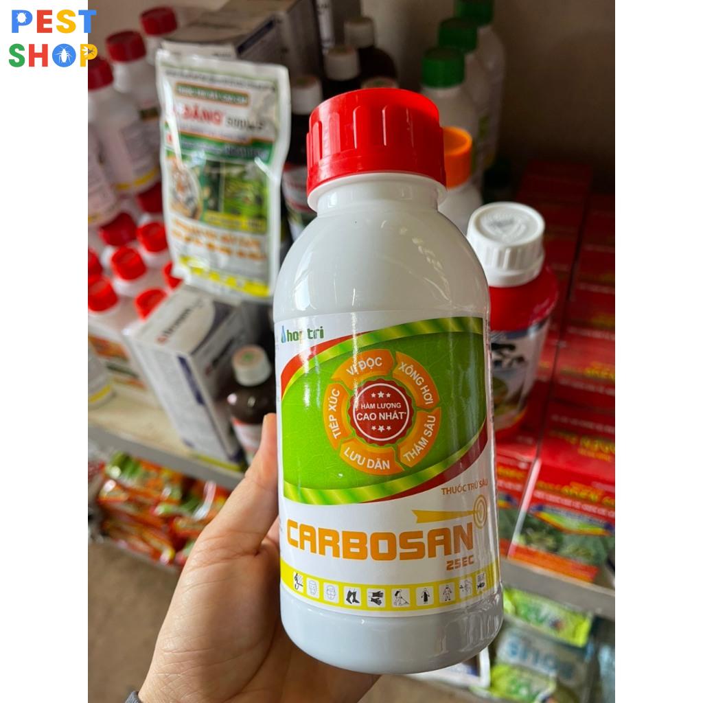 Thuốc trừ sâu Carbosan 25EC diệt trừ hữu hiệu các nhóm sâu chích hút, cắn phá hoa, trái non,… Thuốc trừ sâu chính hãng Hợp Trí.