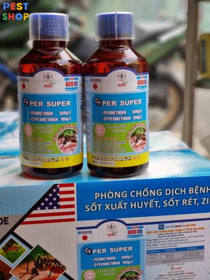 Thuốc Cyper Super 600EC diệt hầu hết các loài côn trùng có mặt trong gia đình bạn. Thuốc phun diệt muỗi côn trùng Cyper Super 600EC được sử dụng trong y tế và gia đình. Có thể phun thuốc trong nhà hoặc ngoài trời, những nơi có muỗi tập trung nhiều. Sản phẩm được bộ y tế khuyến cáo sử dụng để phòng ngừa dịch bệnh: sốt xuất huyết, sốt rét, zika, viêm não nhật bản…