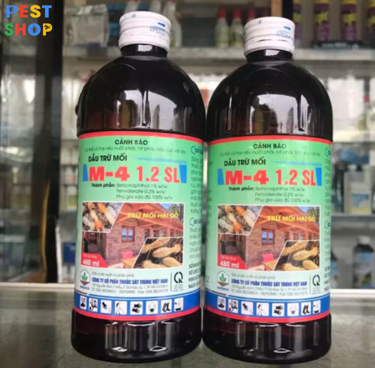Dầu trừ mối M-4 là dầu diệt mối được sản xuất bởi Vipesco. Đây là một sản phẩm của Việt Nam sản xuất với giá thành rẻ, hiệu quả cao. Thuốc rất dễ sử dụng nên được mọi người sử dụng rộng rãi.
