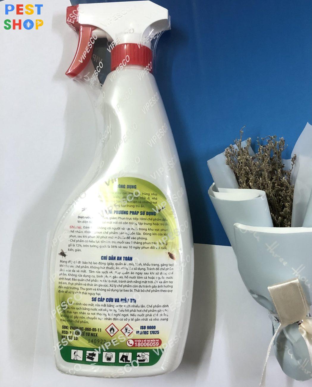 - Phun dầu trừ muỗi Vipesco trong không khí với lượng trung bình 1.2ml cho 1m3 không khí.