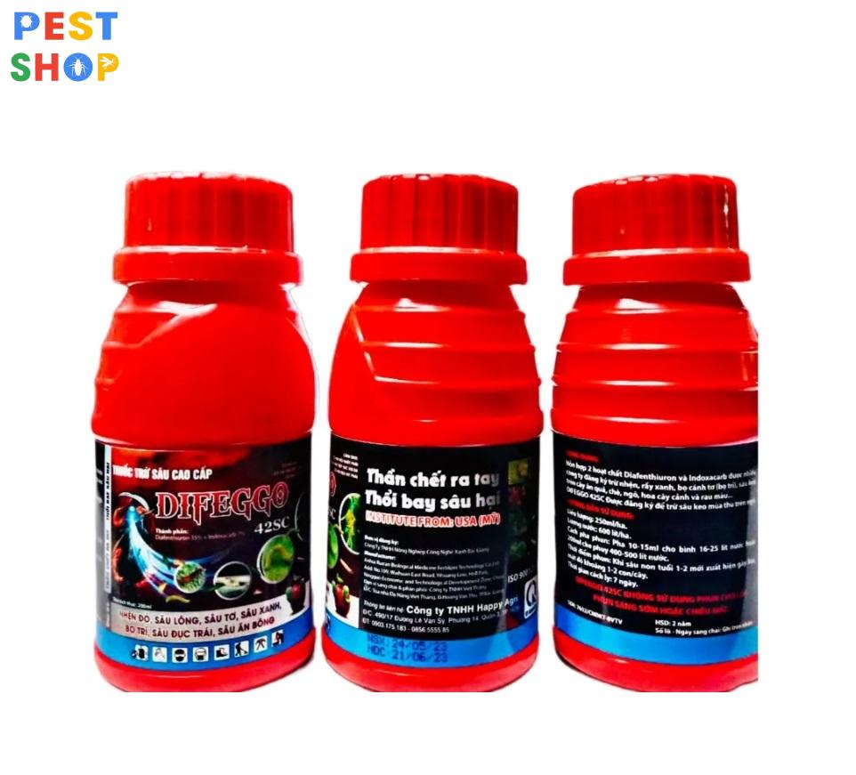 Difeggo 42SC là thuốc trừ sâu thế hệ mới, được sử dụng phổ biến trong nông nghiệp để diệt trừ nhiều loại sâu hại trên cây trồng. Difeggo 42SC Đặc trị nhện, rầy xanh, bọ cánh tơ (bọ trĩ), sâu keo trên cây ăn quả, chè, ngô, hoa cây cảnh và rau màu,…