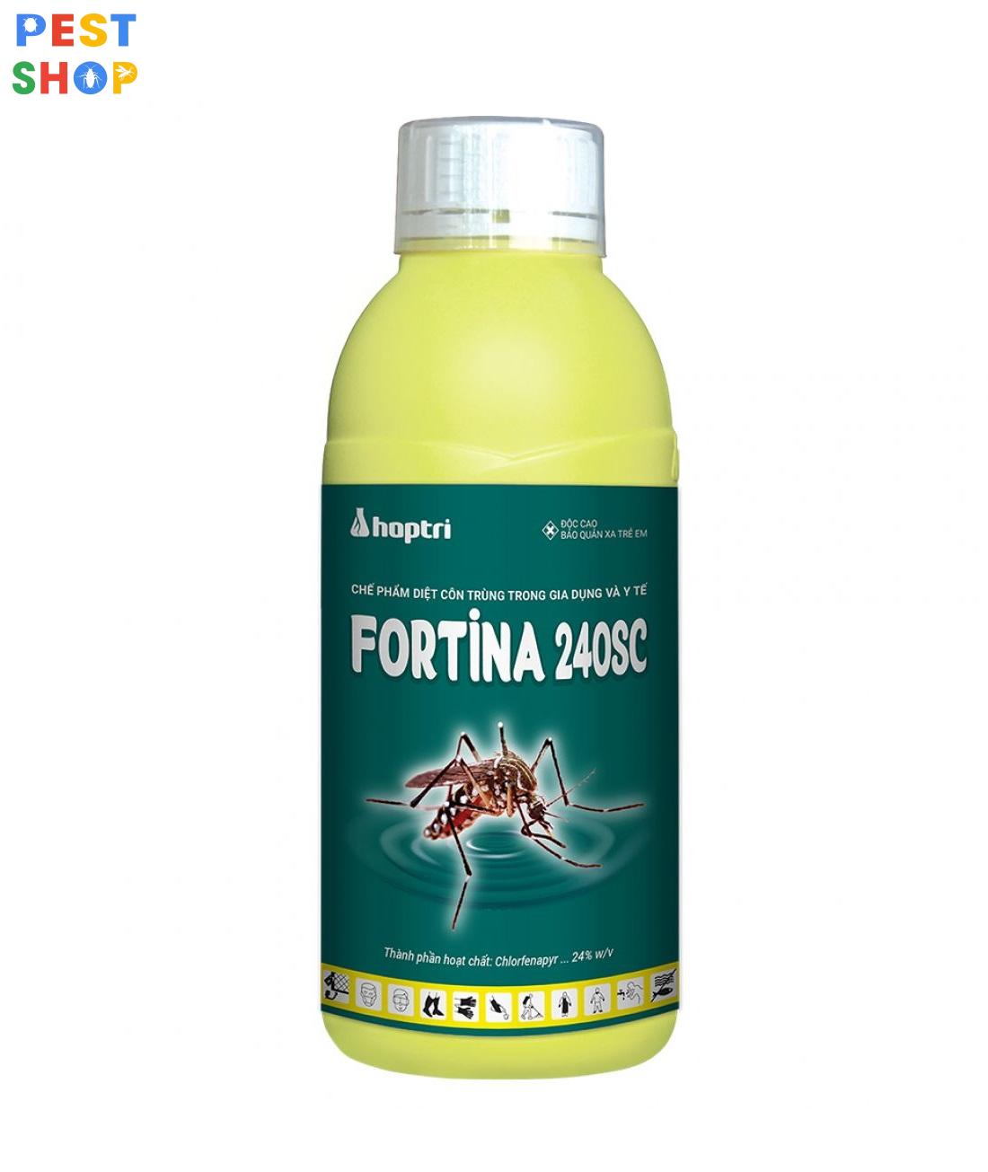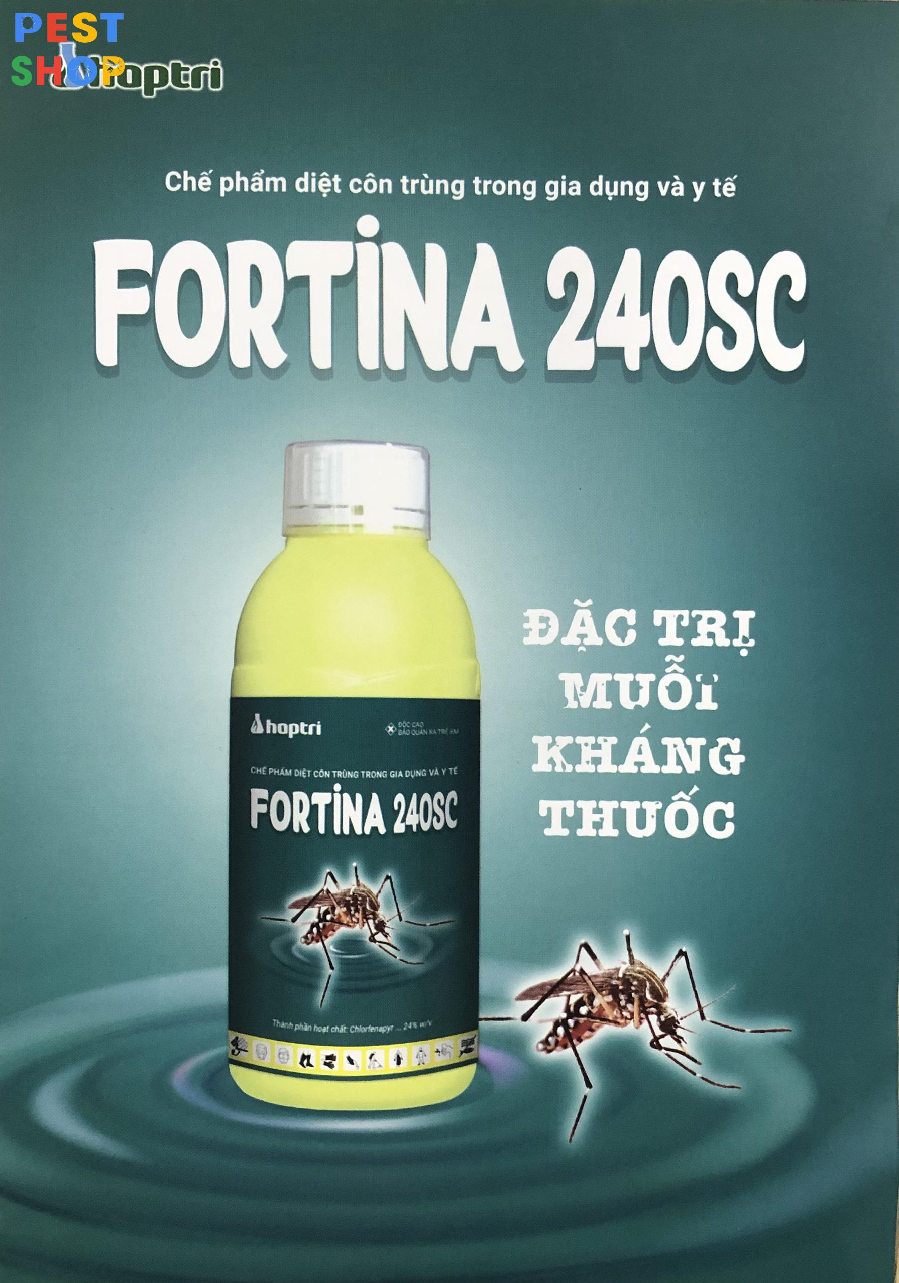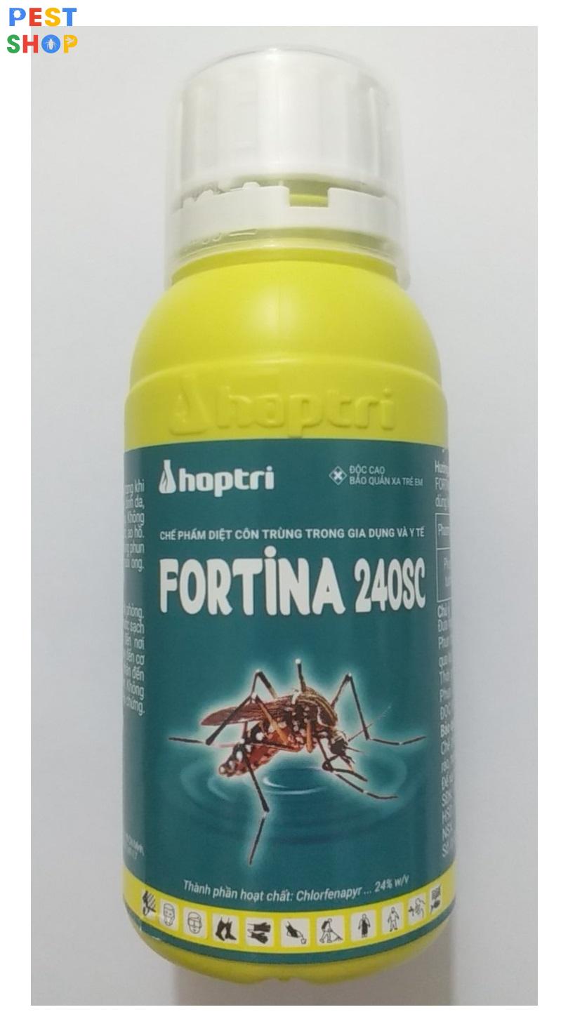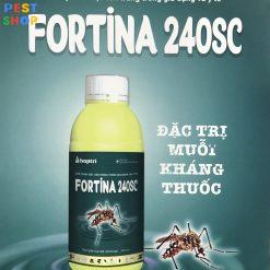 - FORTINA 240SC là thuốc trừ ruồi, muỗi, kiến, gián, mối mọt, mạt, bọ chét, ve chó… trong gia dụng và y tế.Tác động ức chế sự tổng hợp năng lượng trong ty thể gây chết côn trùng, dịch hại một cách nhanh chóng.
