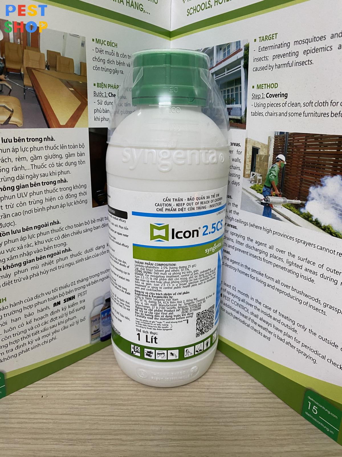Thuốc diệt côn trùng ICON 2.5CS là một sản phẩm thuốc diệt côn trùng số 1 hiện nay. Chế phẩm được nhập khẩu từ Thuỵ Sỹ có hiệu quả vô cùng tốt. Icon 2.5 CS đặc trị các muỗi, kiến, gián, mạt, rệp… Trong gia dụng và y tế. Thuốc không mùi, không gây kích ứng da, an toàn với người và vật nuôi. Bạn đang cần tìm thuốc diệt côn trùng đảm bảo an toàn-giá rẻ-hiệu quả cao. Hôm nay, Pest Shop xin giới thiệu chi tiết về thuốc diệt côn trùng Icon 2.5CS tói các bạn.