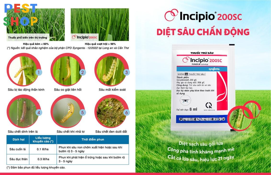 Với cơ chế tác động hoàn toàn mới, Incipio 200SC cho hiệu quả triệt để trong phòng trị sâu cuốn lá, kể cả sâu kháng thuốc, vượt trội hơn hẳn so với các thuốc hiện nay trên thị trường.