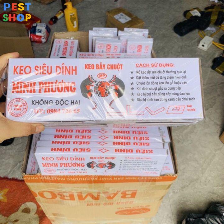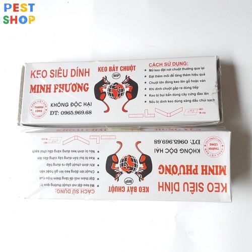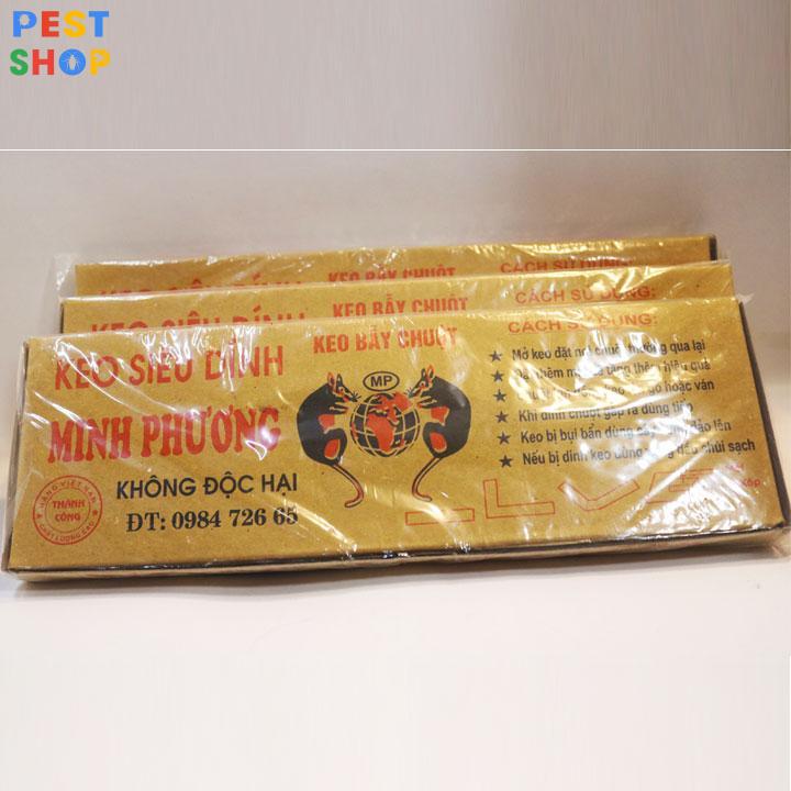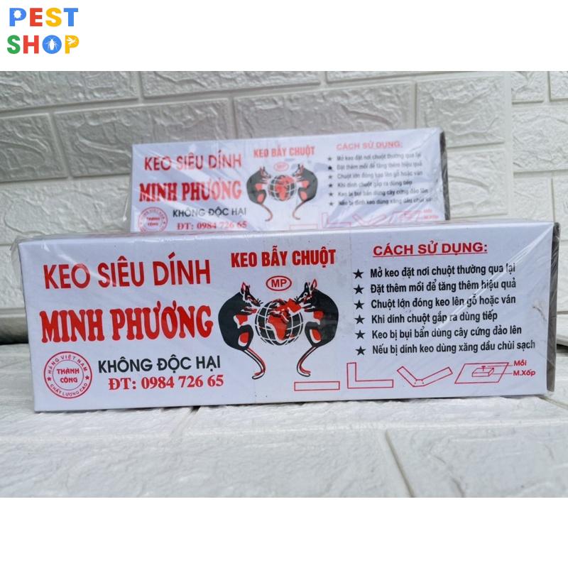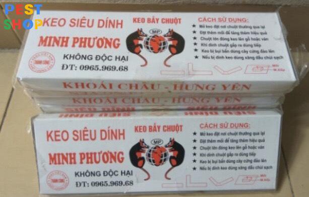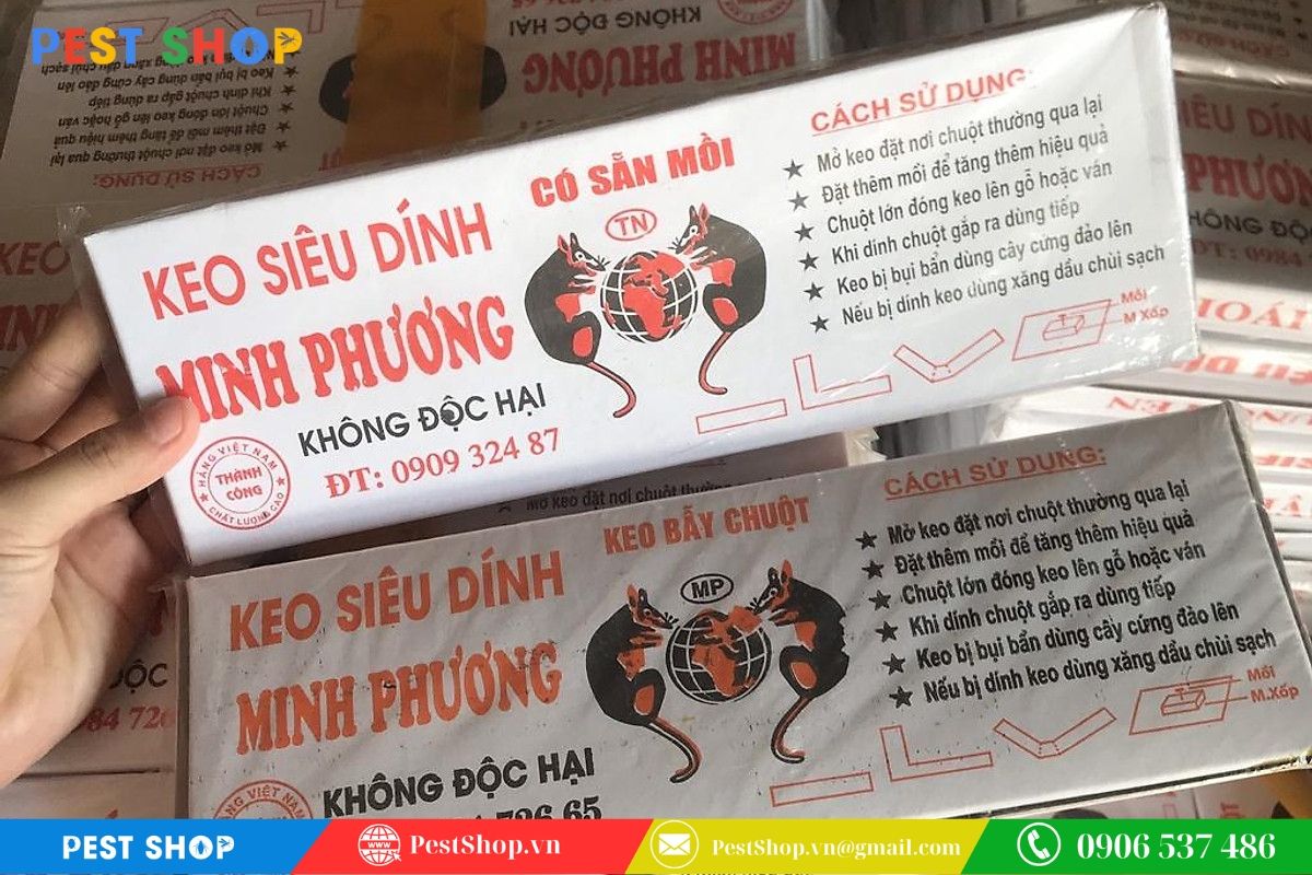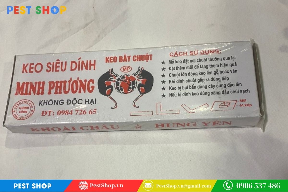 Keo dính chuột Minh Phương là loại bẫy chuột sử dụng keo siêu dính được phủ trên lớp bìa Carton. Chất kết dính công nghiệp thường ở dạng lỏng quánh, có màu trong suốt, trắng ngà hoặc nâu sẫm. Sản phẩm là phương pháp tiêu diệt chuột an toàn và hiệu quả, có thể được tái sử dụng nhiều lần, hoạt động trên mọi địa hình khác nhau.