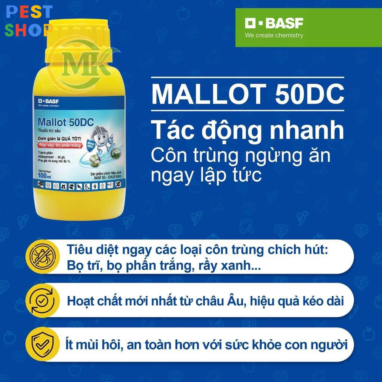 Mallot 50DC là thuốc trừ sâu thế hệ mới chuyên đặc trị các loại côn trùng chích hút như rệp sáp, bọ trĩ, bọ phấn trắng trên nhiều loại cây trồng.