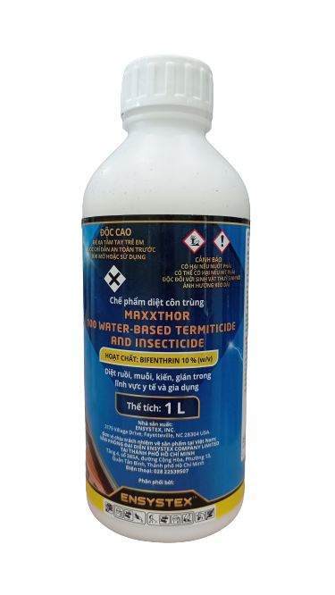 - Maxxthor 100 có tác dụng diệt ruồi, muỗi, kiến gián và các loại côn trùng khác dùng trong gia dụng và y tế .Sử dụng để phòng ngừa dịch bệnh: sốt xuất huyết, sốt rét, zika, viêm não nhật bản…. Maxxthor 100 là chế phẩm diệt côn trùng được nhập khẩu từ USA, nghiên cứu và sản xuất bởi Công ty Ensystex INC