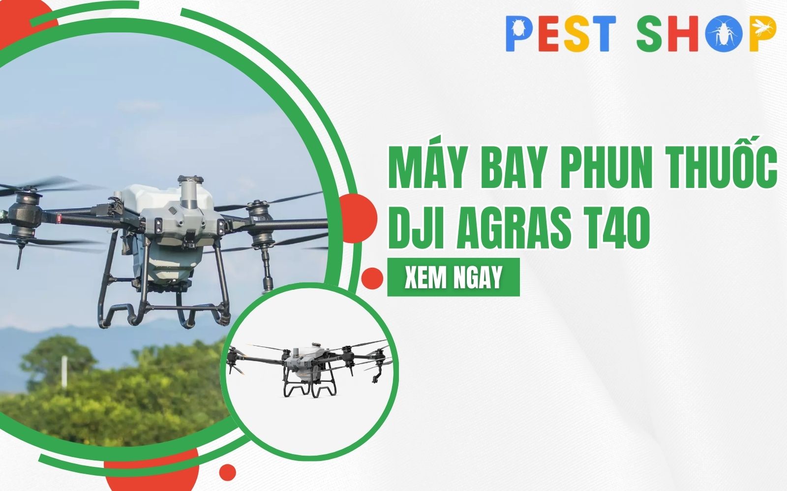 Nổi bật trong danh mục sản phẩm của Pest Shop là máy bay phun thuốc DJI Agras T40 – thiết bị hiện đại mang lại hiệu suất vượt trội trong việc phun thuốc bảo vệ cây trồng. Với công suất phun lên đến 21,3 ha/giờ và công nghệ cảm biến tiên tiến, DJI Agras T40 giúp tiết kiệm thời gian và tối ưu hiệu quả phun thuốc.
