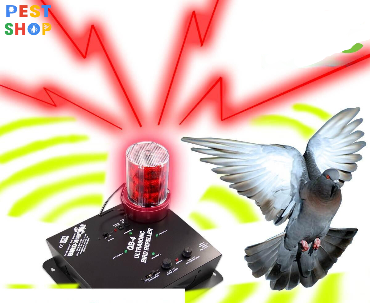 Máy đuổi chim Super QuadBlaster 4 – Hệ thống răn đe siêu âm trong nhà với đèn LED nhấp nháy. Hệ thống âm thanh trong nhà ngăn chặn các loài động vật gây hại với âm thanh siêu âm tần số cao thay đổi liên tục và ánh sáng nhấp nháy LED nhấp nháy. Đuổi chim một cách nhanh và không ảnh hưởng đến con người.