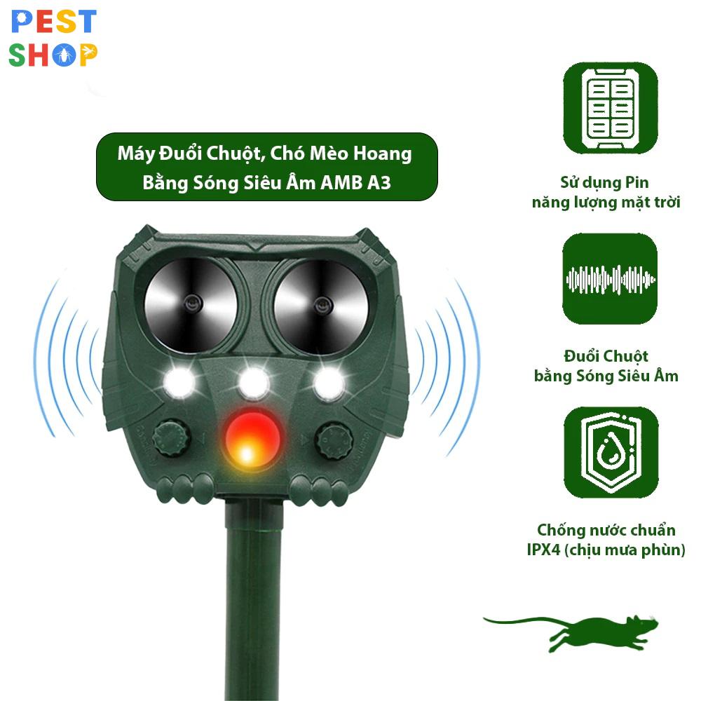 Thiết bị đuổi chuột AMB A3 là cách diệt chuột bằng phương pháp thông minh . An toàn, không cần mồi, không cần hoá chất diệt chuột đang được sử dụng phổ biến hiện nay. Đặc biệt này có khả năng đuổi được tất cả các loài chuột to nhỏ, trên mọi địa hình kể cả trên dây, trên cây, dưới nước, trong nhà, ngoài đồng. Ngoài ra, Máy Đuổi Chuột AMB A3 còn có thể đuổi ruồi muỗi kiến gián…. Cùng Pest Shop tìm hiểu về san phẩm diệt chuột an toàn này nhé.