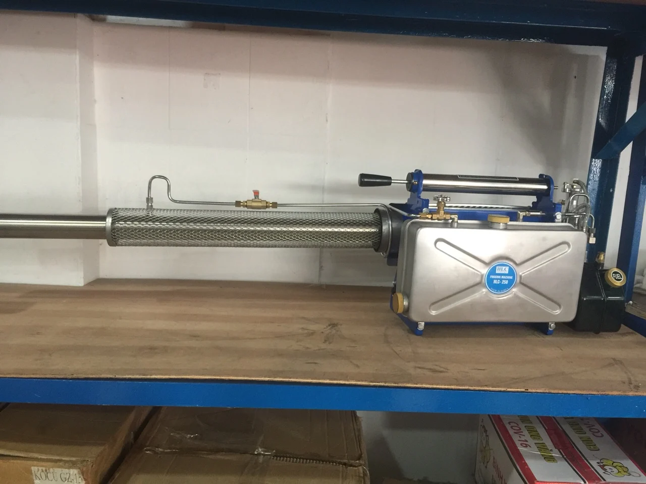 - Sau khi khởi động thì tháo van bình đựng hóa chất và bất đầu phun khói.