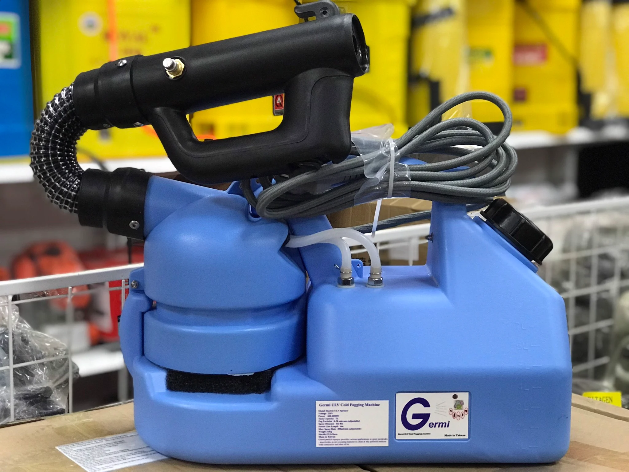 Máy phun sương ULV Germi 7L là sản phẩm cao cấp của hãng Germi – Là một trong những đơn vị hàng đầu trong việc cung cấp các thiết bị phun sát khuẩn. Với ưu điểm là hạt sương siêu mịn giúp tiết kiệm thuốc phun. Máy phun sương Germi có khả năng phun nhiều các loại thuốc diệt côn trùng, thuốc sát khuẩn hay phun phòng chống dịch bệnh.