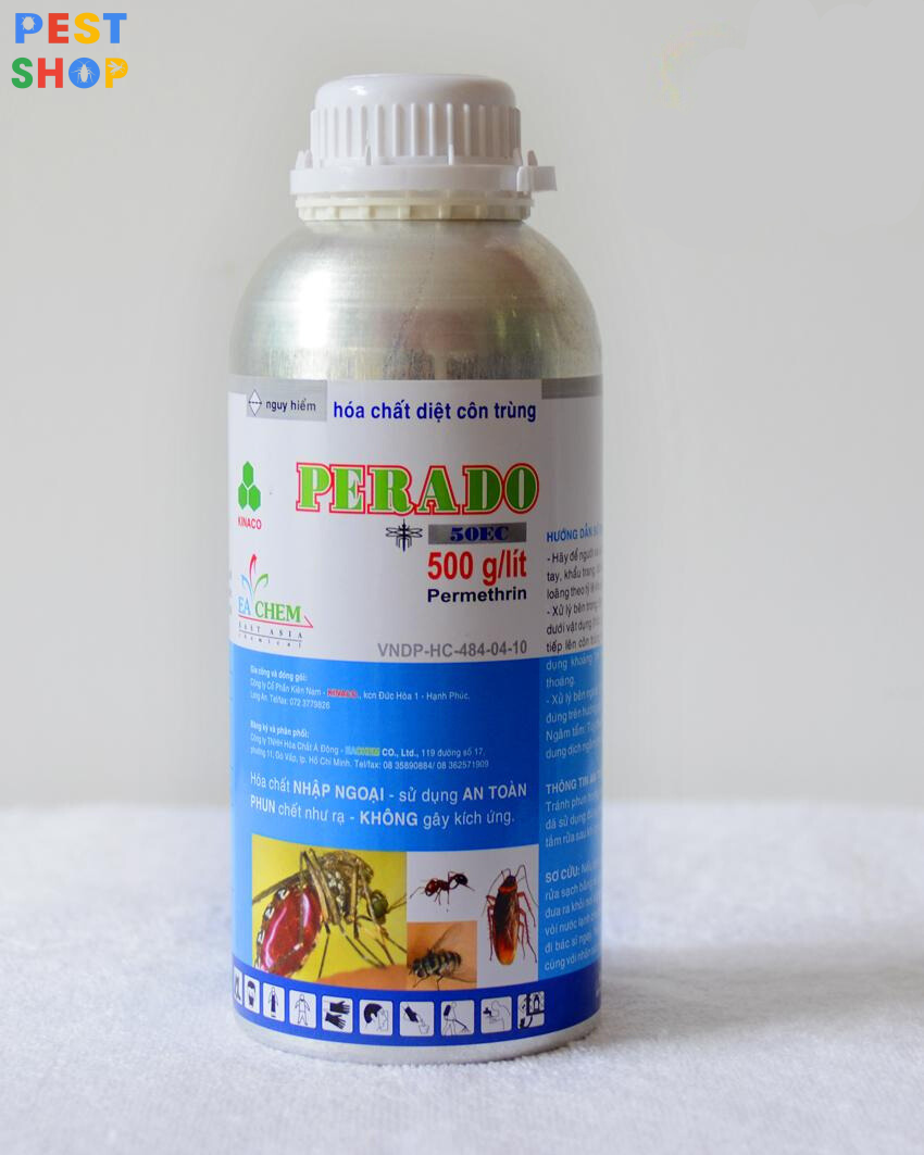 - Thành phần chính có trong Perado 50EC chai nhôm là hoạt chất Permethrin… 50% . Đây là hợp chất có trong hầu hết các loại thuốc diệt côn trùng thế hệ mới. Permethrin được chiết xuất từ tự nhiên nên rất thân thiện với môi trường. Với khả năng gây ức chế hệ thần kinh nhanh kiến các loài côn trùng chết. Permethrin được ứng dụng rộng rãi sản suất các chế phẩm diệt côn trùng hiện nay.