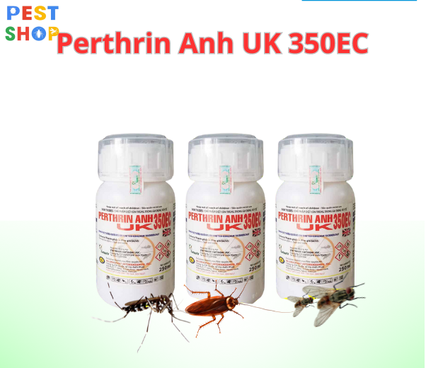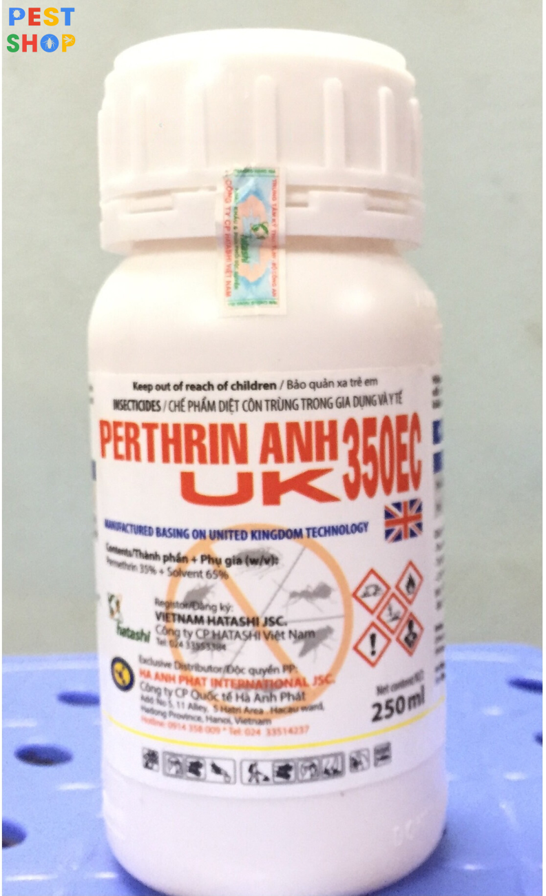 - Thuốc diệt côn trùng Perthrin Anh UK 350EC chứa thành phần tổng hợp Permethrin. Là thành phần chính để diệt trừ côn trùng gây hại. Và phòng chống muỗi được phép lưu hành tại Việt Nam.
