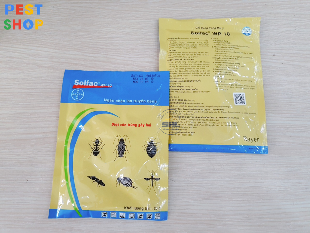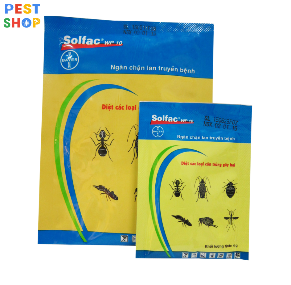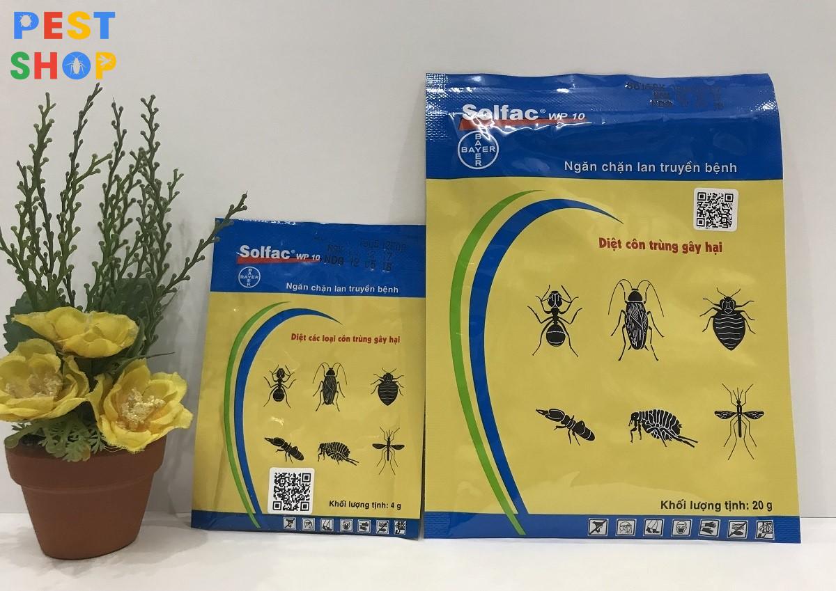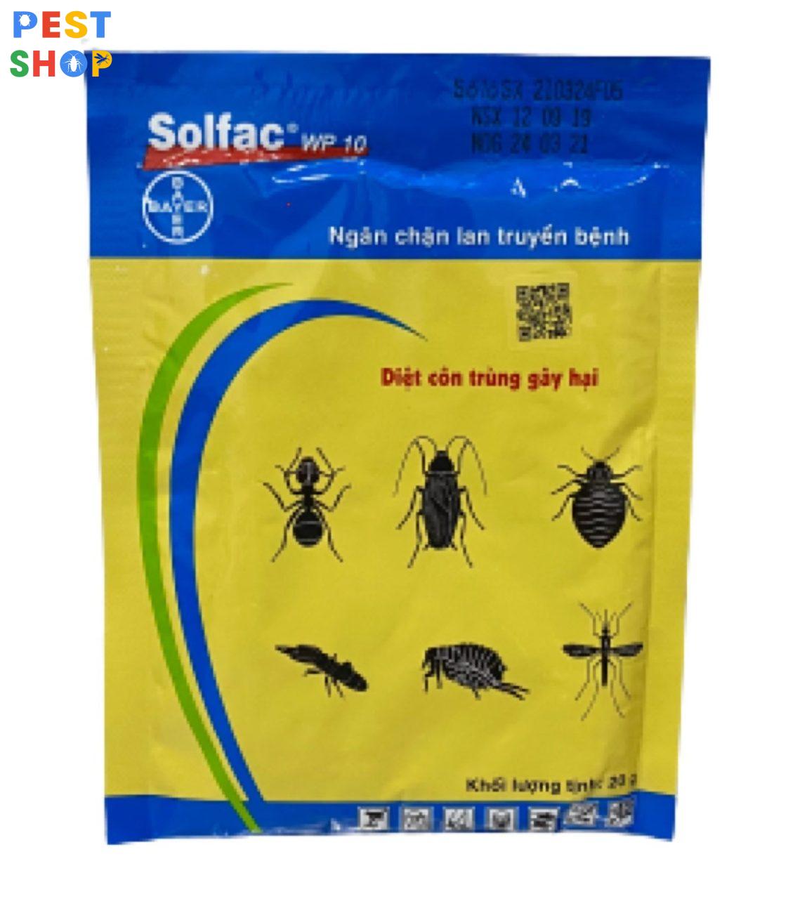 - Thuốc diệt côn trùng Solfac, Đặc trị : Côn trùng tổng hợp, Quy cách đóng gói: 20g. Thành phần: Dạng bột, 100 g chứa Cyfluthrin 10 g