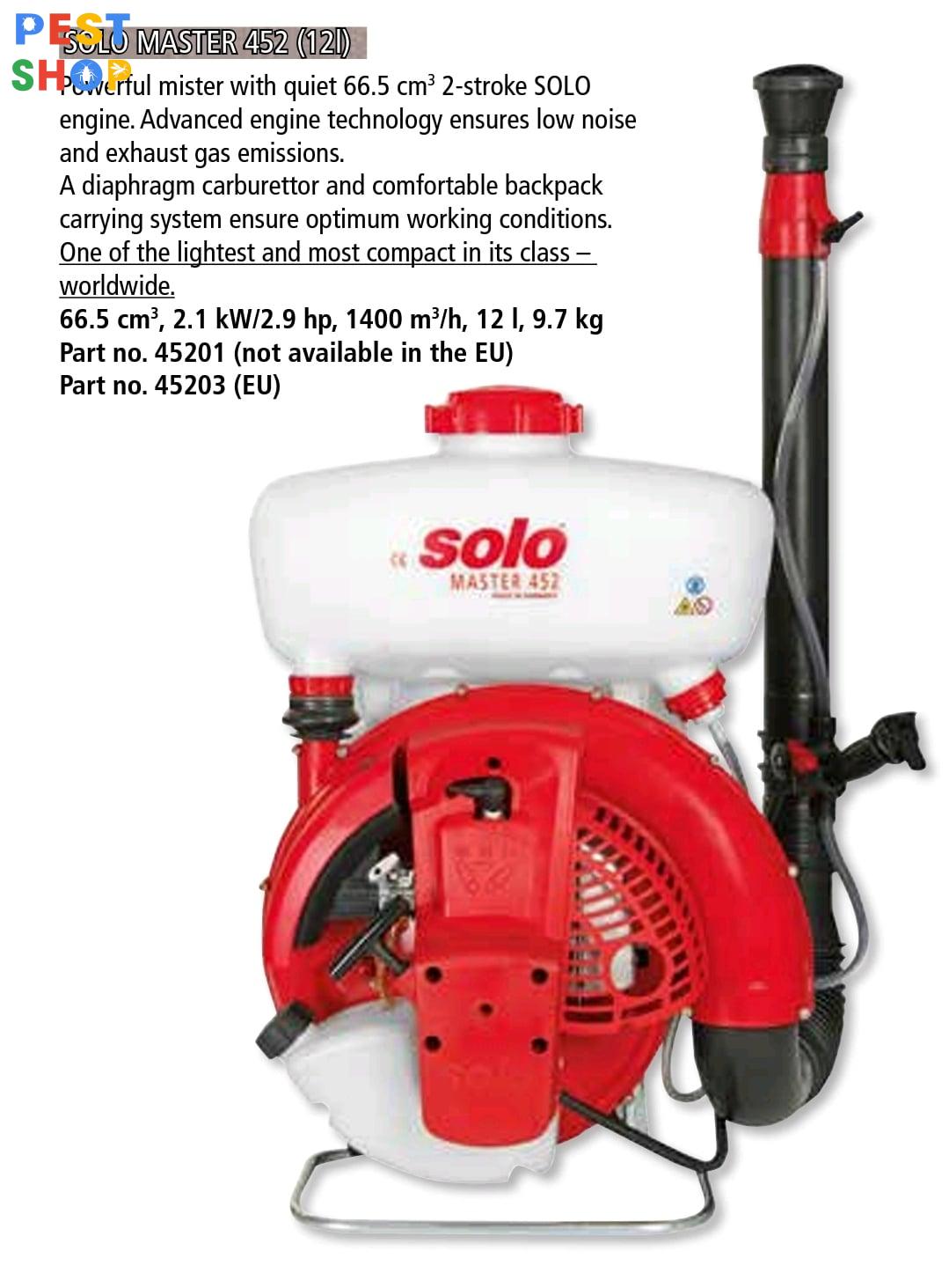 Máy phun sương Solo Master 452 đang được sử dụng phổ biến tại Việt Nam và nhiều nước trên thế giới do sở hữu nhiều ưu điểm nổi bật. Máy phun sương ULV Solo Master 452 là một công cụ hiệu quả để kiểm soát côn trùng, dịch bệnh và các tác nhân gây hại khác trong nông nghiệp, lâm nghiệp và y tế công cộng.