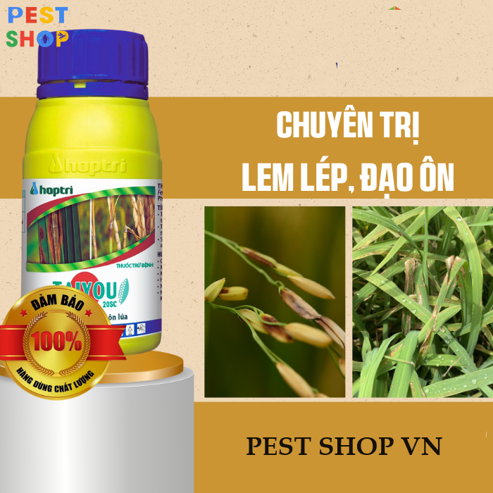 - TAIYOU 20SC ức chế lây nhiễm và chống phát sinh bào tử nấm nên có hiệu lực rất mạnh để đặc trị đạo ôn lá (cháy lá) và đạo ôn cổ bong (thối cổ gié) gây hại lúa.