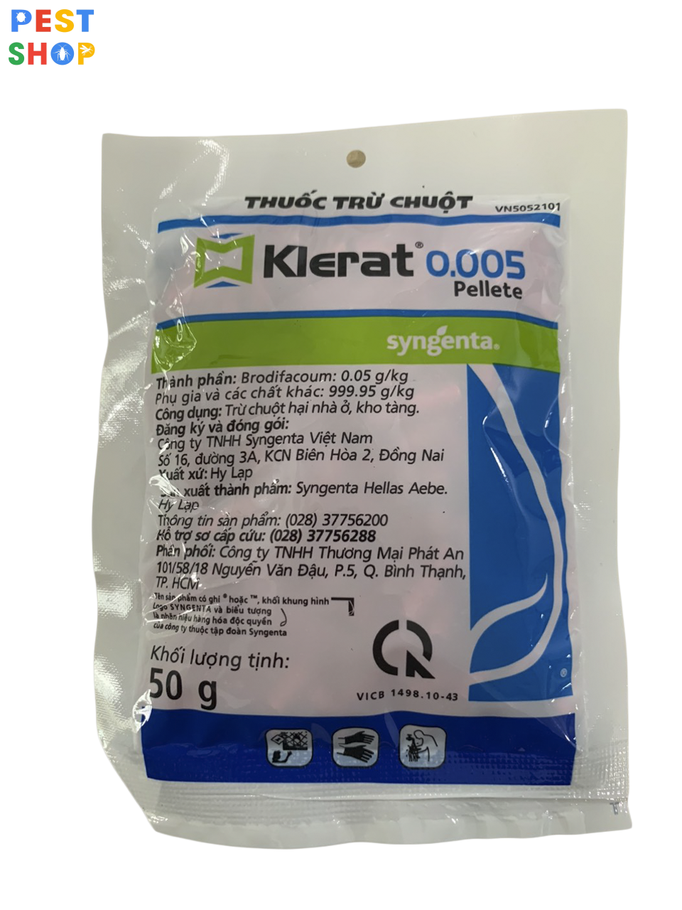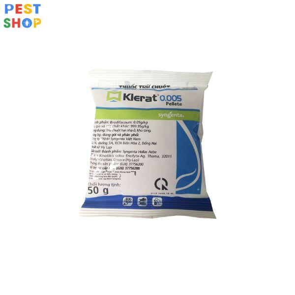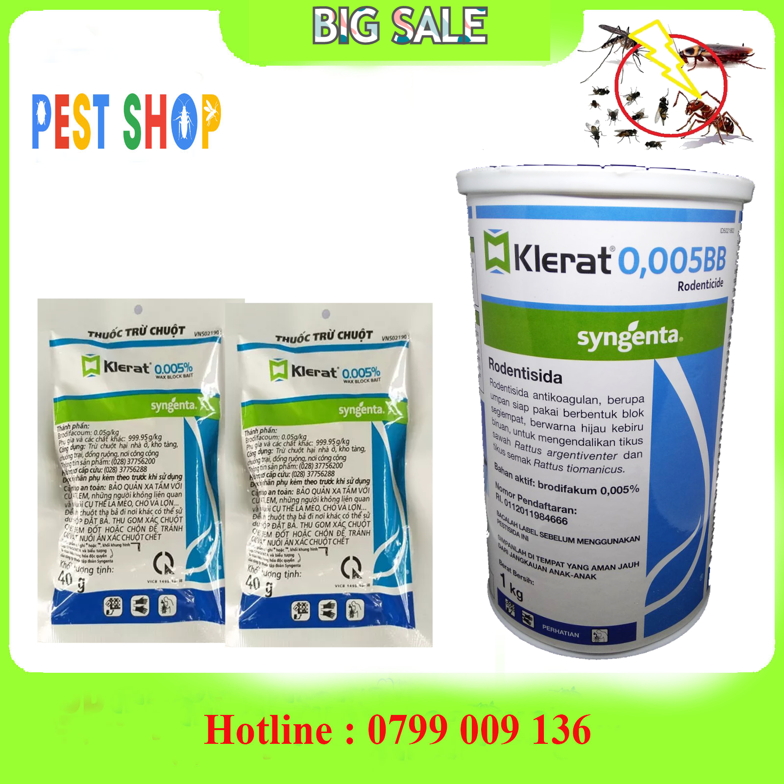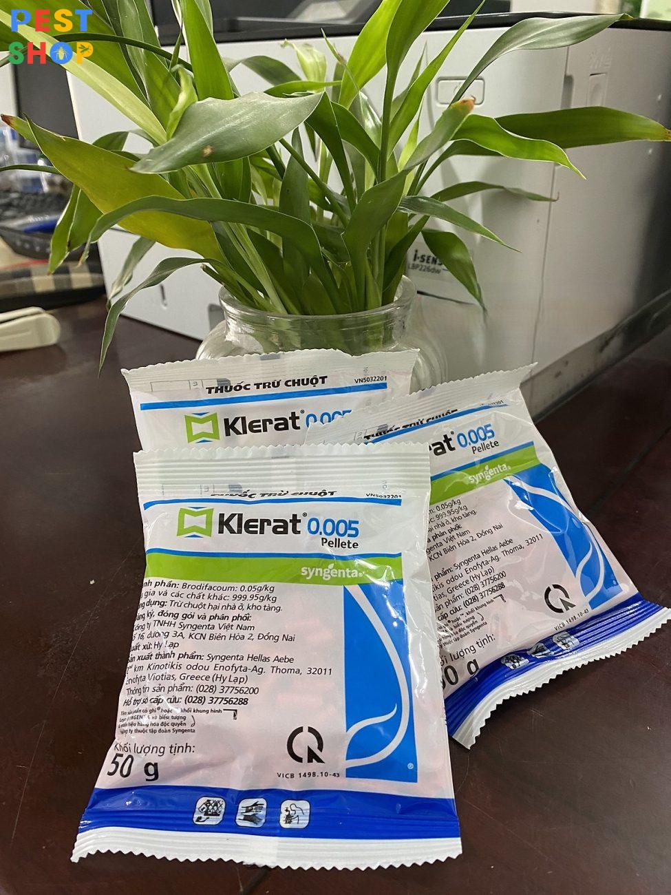 - Ngoài thuốc diệt chuột Klerat 0.005% . Pestshop Việt Nam còn phân phối nhiều loại thuốc và vật tư, trang thiếp bị diệt côn trùng như: Các loại thuốc diệt côn trùng, thuốc diệt chuột, thuốc diệt mối mọt. Máy phun thuốc diệt côn trùng. Đèn diệt côn trùng, bẫy bắt chuột .