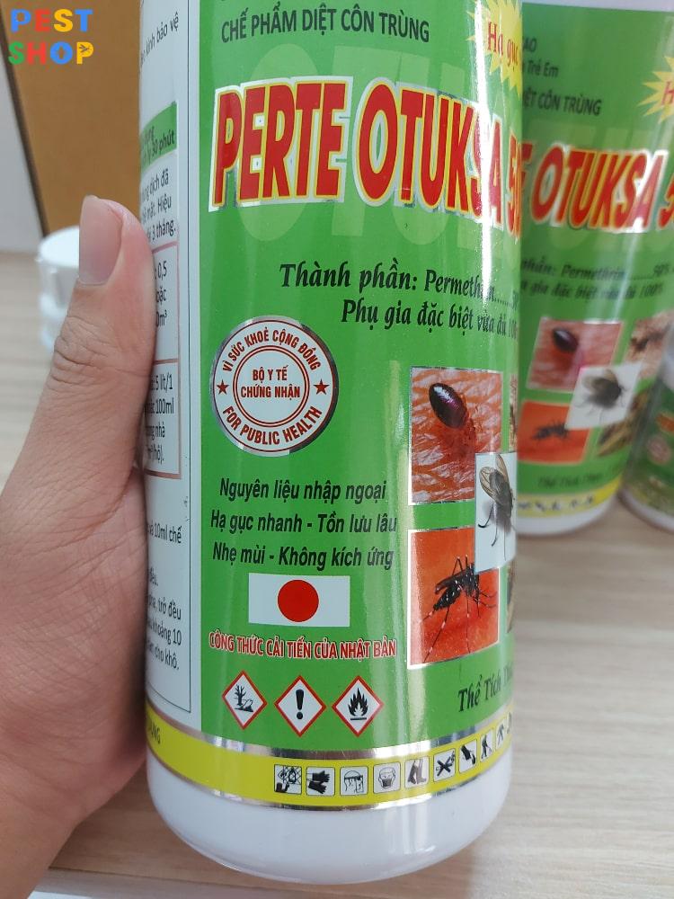 - Perte Otuksa 500EC là chế phẩm thuốc diệt muỗi sinh học dạng nhũ dầu. Sản phẩm của công ty Otuksa Nhật Bản, có công dụng diệt trừ rất nhiều loài côn trùng trong nhà như muỗi, gián, kiến, ruồi, bọ chét, ve.