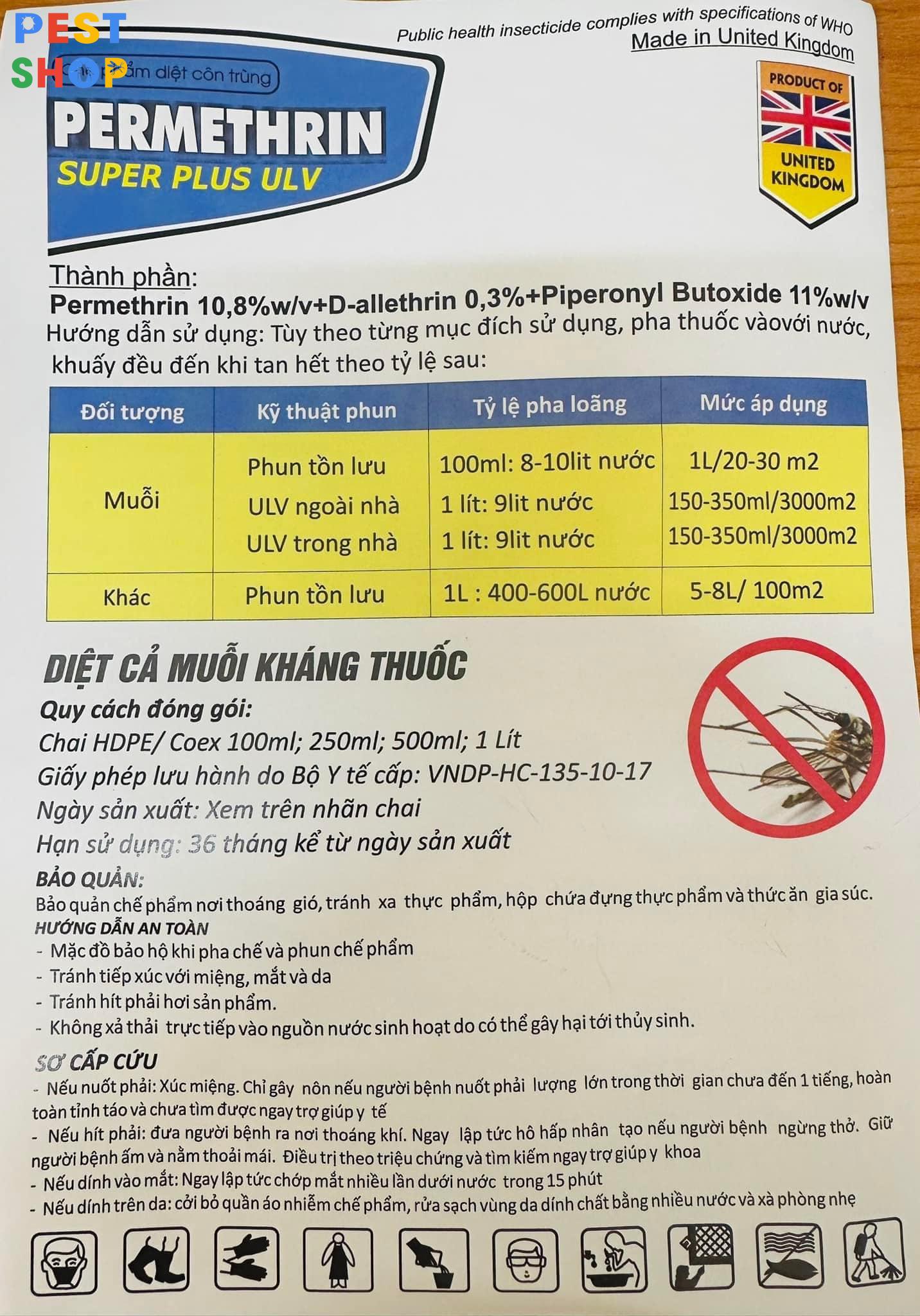 Thuốc diệt muỗi Anh Quốc Permethrin Super Plus ULV