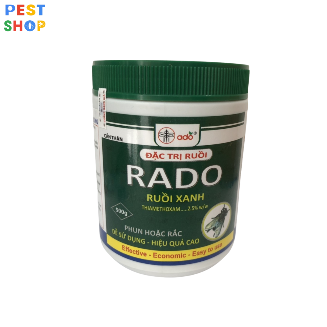 Thuốc diệt ruồi RADO diệt hầu hết các loài ruồi có mặt trong gia đình bạn, đặc biệt là loại ruồi xanh khó trị. Thuốc được sử dụng rộng rãi. Đối với các khu vực chuồng, trại chăn nuôi gia súc, gia cầm, thuốc rado là một giải pháp vô cùng tuyệt vời. Bạn có thể sử dụng thuốc ở các điều kiện khắc nghiệt khác nhau.