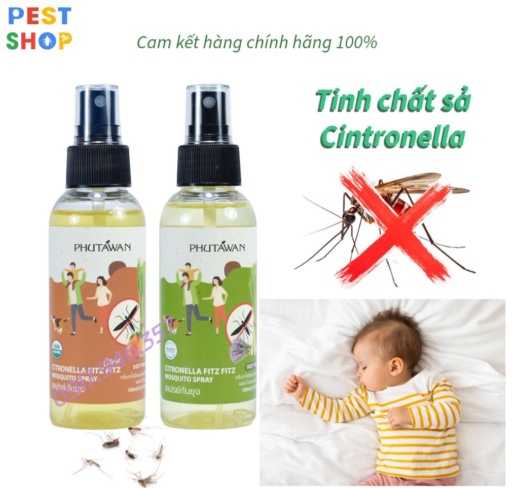 Tinh dầu xịt chống muỗi, côn trùng Phutawan Citronella từ Thái Lan.