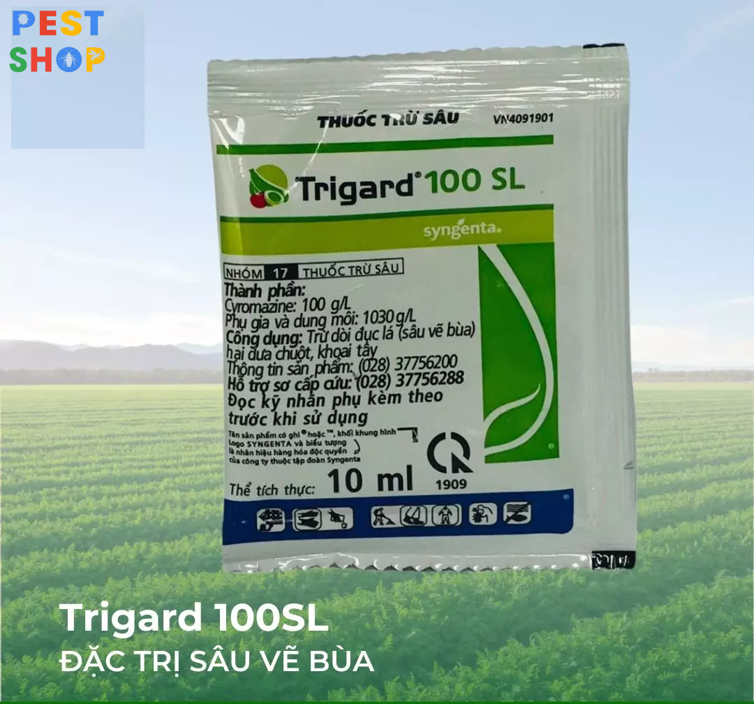 - Trigard 100SL là giải pháp đặc hiệu, mạnh mẽ kiểm soát cho dòi (ruồi) gây hại cây trồng với cơ chế ức chế lột xác,.