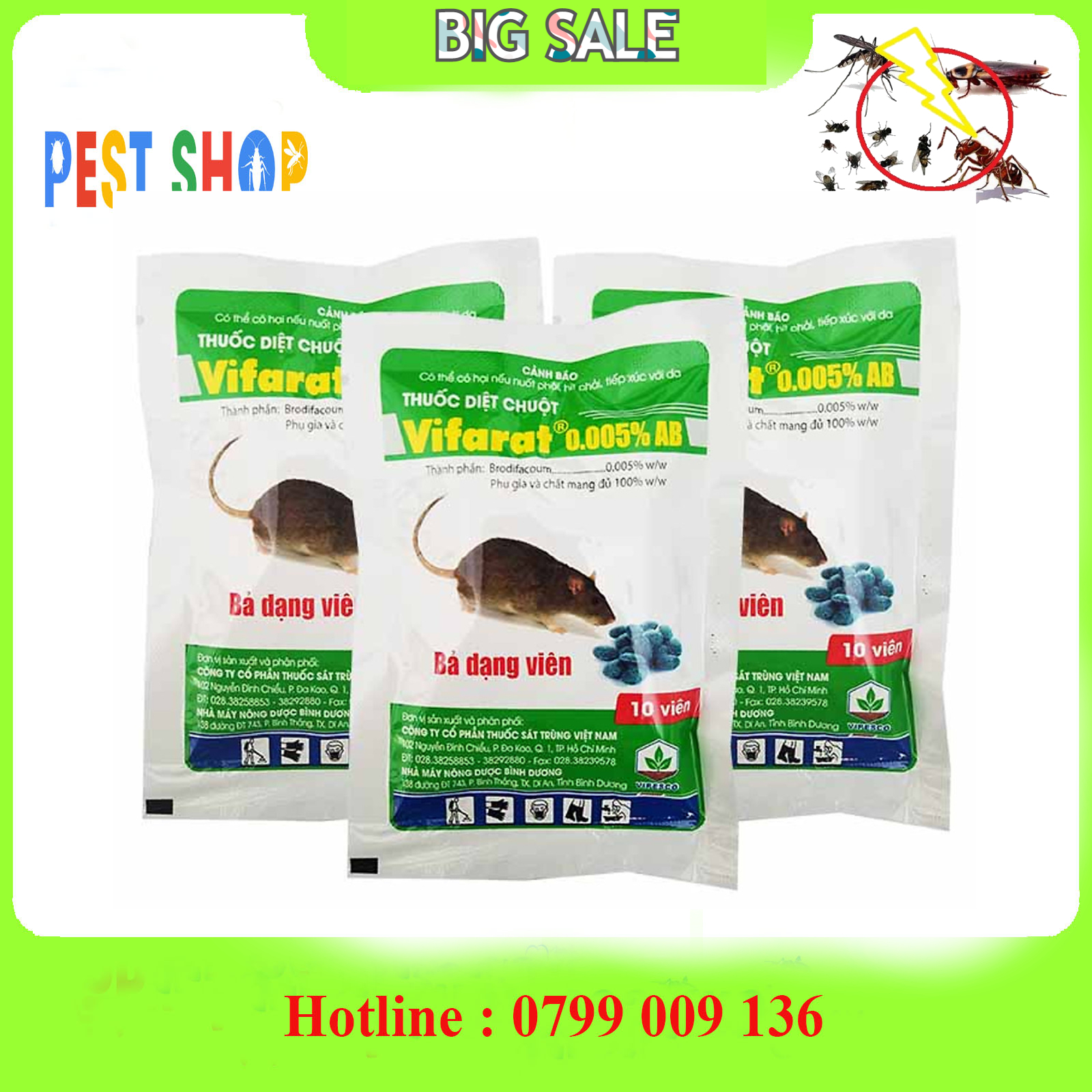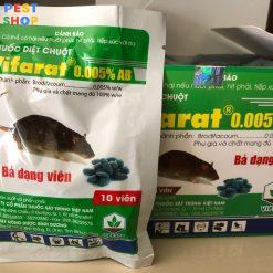 Vifarat 0.005% AB là thuốc diệt chuột thế hệ mới. Thuốc có xuất xứ từ Việt Nam nên có giá thành khá rẻ, hiệu quả diệt chuột cao. Vifarat 0.005% AB được coi là khắc tinh của loài chuột.