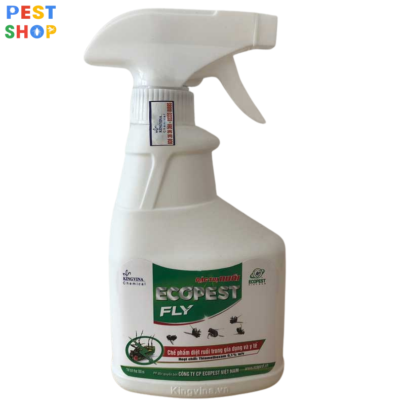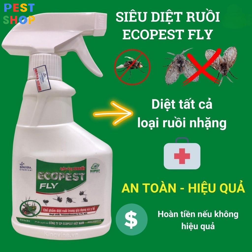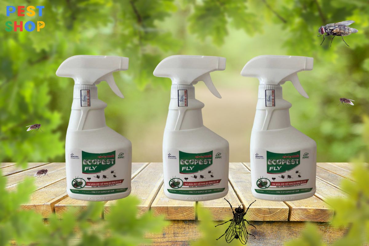 - Bình xịt ruồi Ecopest Fly trị ruồi trong 1-3 phút. Diệt tất cả các loài ruồi. thích hợp sử dụng trong hộ gia đình, nhà hàng. Có thể diệt ruồi từ 1-3 phút sau khi phun.