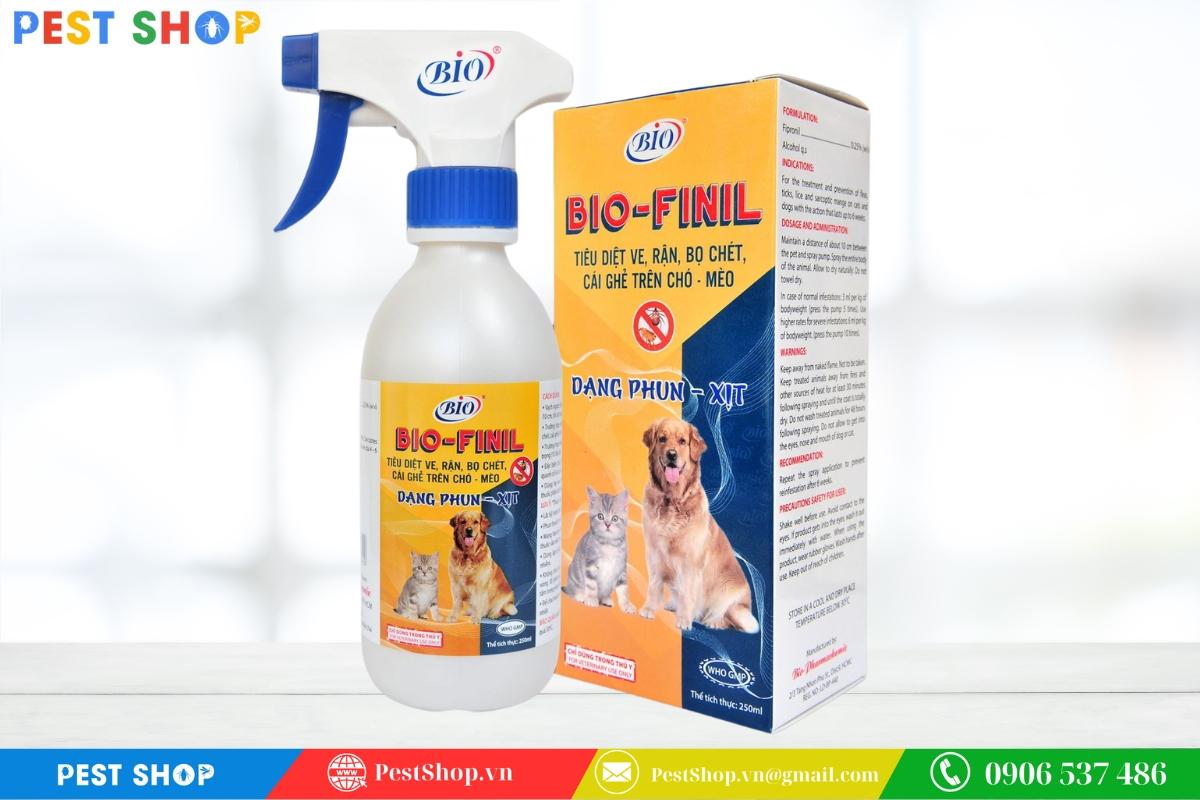 Bio Finil là loại thuốc xịt bọ chét trong nhà được nhiều người tin dùng hiện nay. Sản phẩm được điều chế theo dạng dung dịch nên có thể phun trực tiếp lên thú cưng.