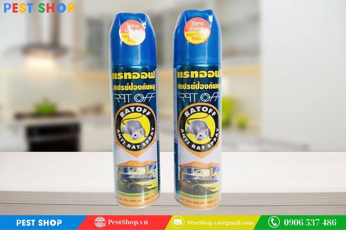 Thuốc xịt chuột Thái Lan công nghệ mới, còn được biết đến với tên gọi Rat Off, là một sản phẩm đuổi chuột được sử dụng phổ biến trên thị trường. Thuốc sử dụng công nghệ mới, sử dụng tinh dầu để xua đuổi chuột ra khỏi không gian sống một cách nhanh chóng nhất. Rat Off được thiết kế dưới dạng chai xịt, dễ dàng sử dụng trong gia đình, văn phòng, khoang xe ô tô và nhiều khu vực khác.