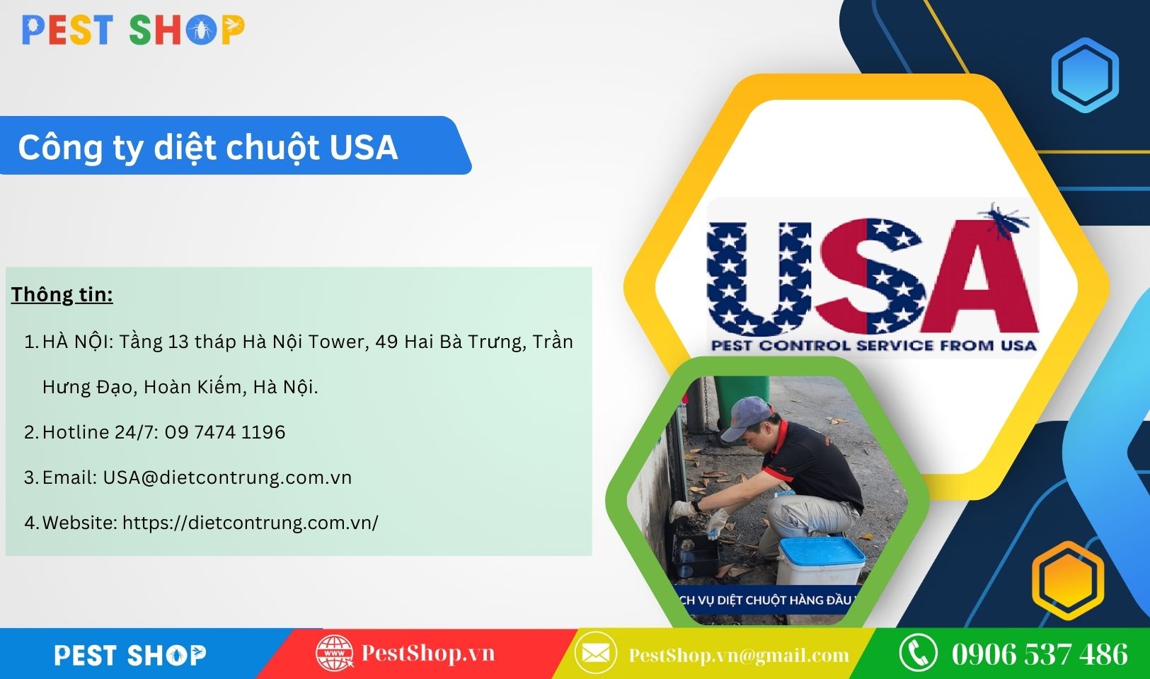 USA Pest Control là một công ty diệt côn trùng uy tín tại Hà Nội, cung cấp dịch vụ diệt chuột Hà Nội hiệu quả, an toàn và chuyên nghiệp. Với đội ngũ kỹ thuật viên dày dặn kinh nghiệm và trang thiết bị hiện đại, USA Pest Control cam kết mang đến cho khách hàng sự hài lòng tuyệt đối.